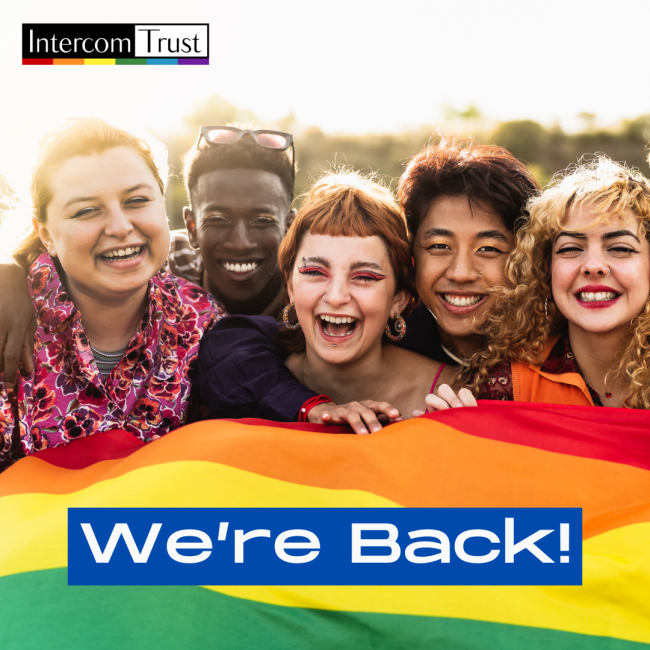 Welcome to Intercom Trust. We are an LGBT+ led charity, proudly working with 1000’s of people each year to improve wellbeing and inclusion across the region. We are here for you.