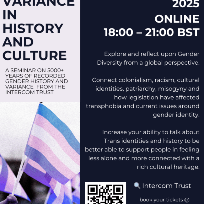 We are excited to announce that we are running our online Gender Variance in History and Culture seminar once again on 15th December from 18:00 – 21:00! The seminar will cover ov
